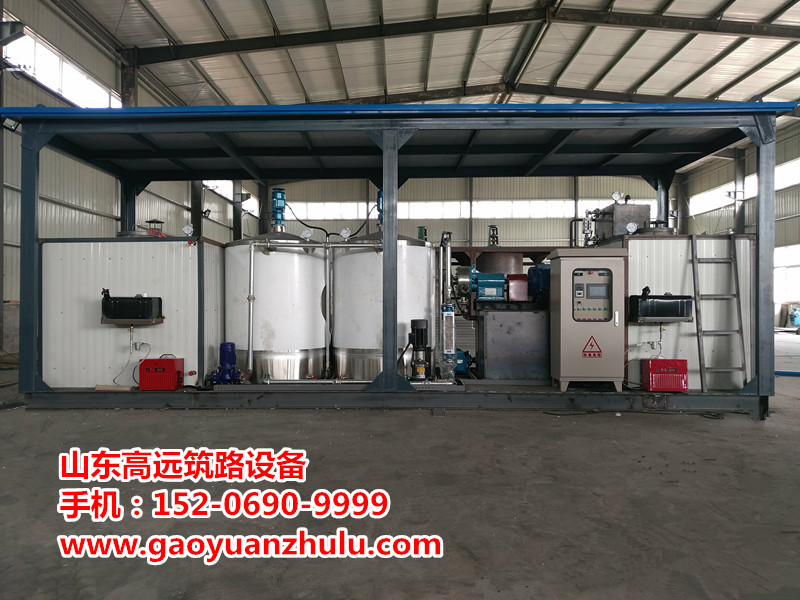 瀝青加溫罐、乳液摻配罐、乳化劑反應(yīng)釜(兩個)、成品罐、調(diào)速瀝青泵、調(diào)速乳液泵、乳化機、管道泵、成品輸送泵、電氣控制柜、大底板、管道、閥門、過濾系統(tǒng)等組成。