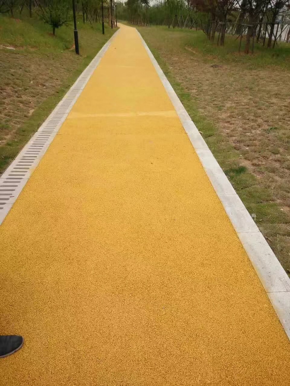 攪拌機械的設置場地,透水彩色瀝青的攪拌是采用小型臥式攪拌機。攪拌機超佳的設置計劃是施工現場的中段,因透水彩色瀝青是屬干料性質的透水彩色瀝青,其初凝快,為運輸時間應盡量短。為避免透水彩色瀝青粘污施工場地,攪拌機下部的一定范圍需用防護板設防措施。
